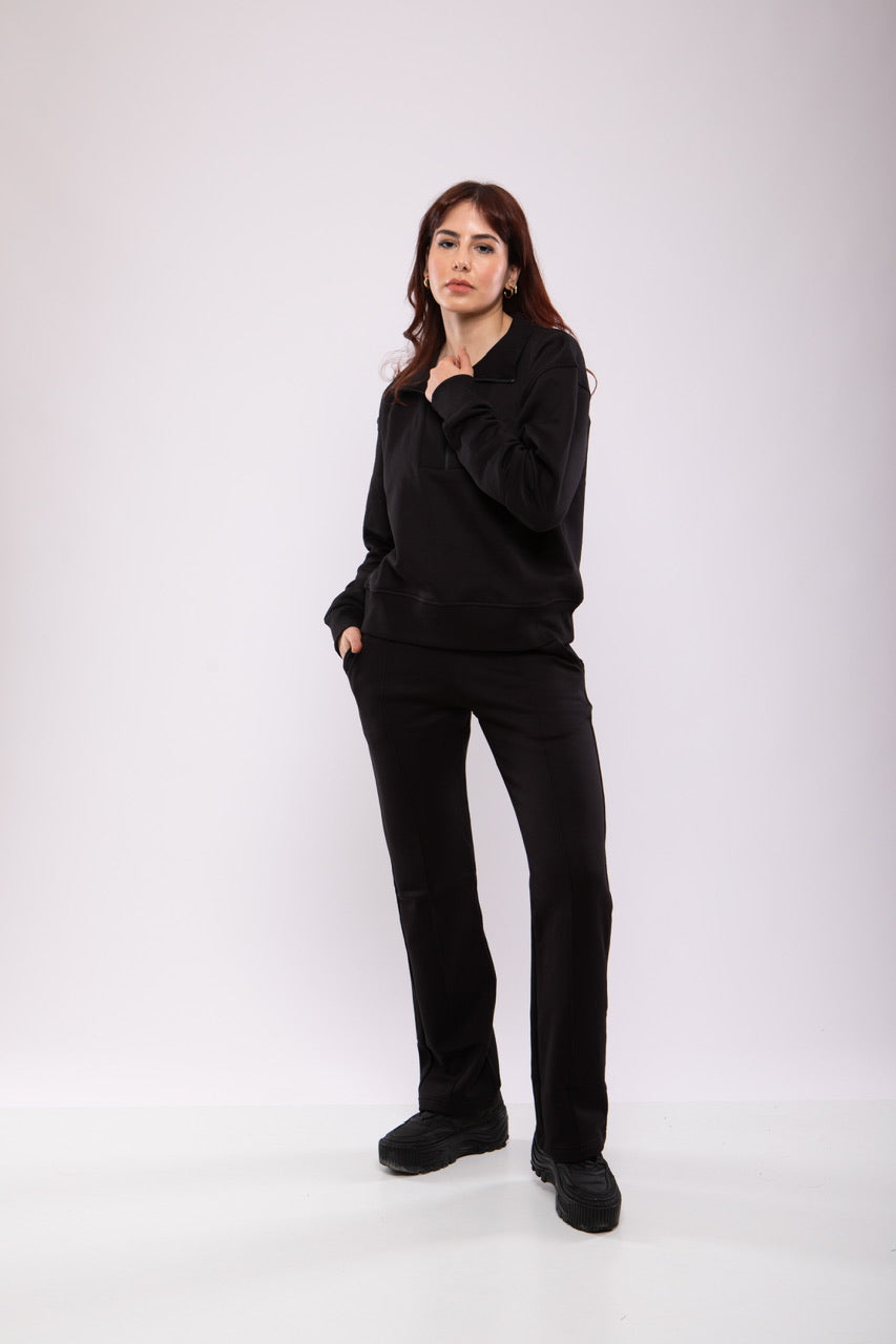 Ensemble Sweat-shirt Zippé & Pantalon Flare Jogging Femme