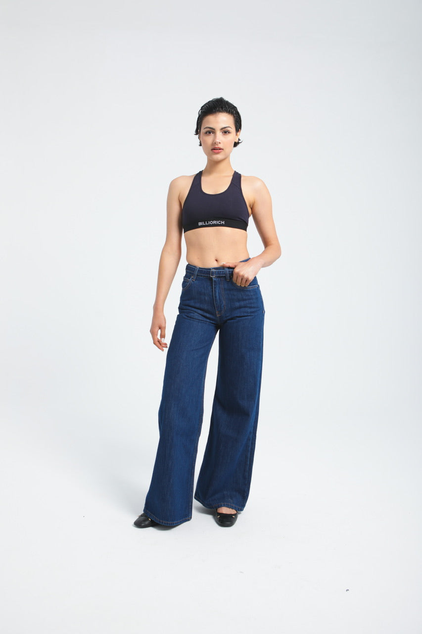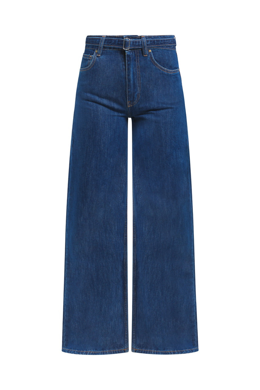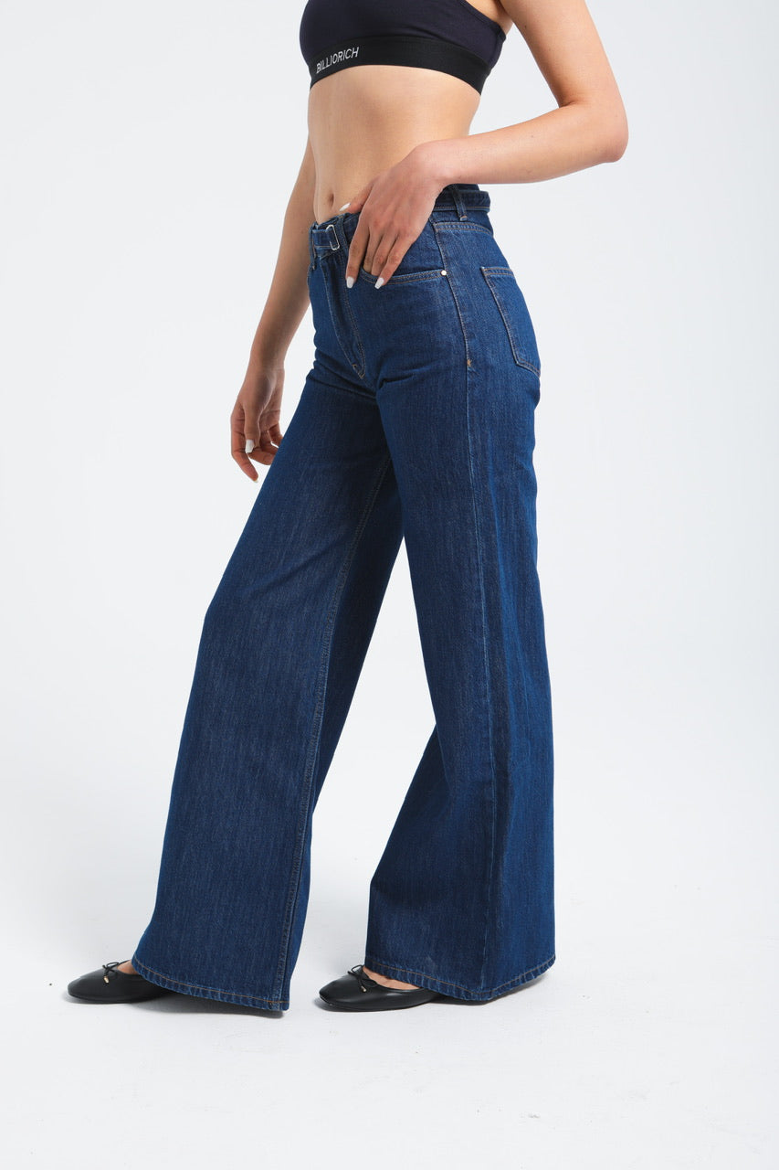 Pantalon large en denim avec ceinture à la taille